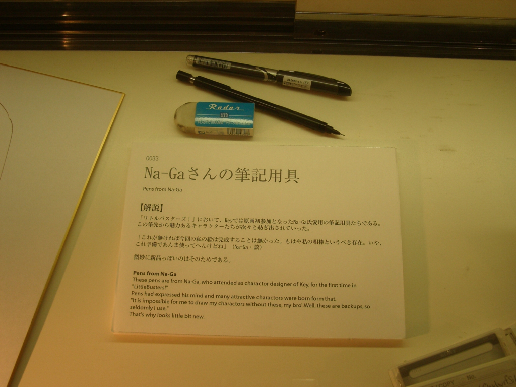 原画展は1時間の交代制なので、ここで終了。実はSDカードの容量が少なくて、原画展の中で相当な枚数の写真を消去したという裏話も……。今まで巡礼程度では困ったことなかったんですが、今日みたいにがっつり写真を撮るとなると256MBじゃまったく足りませんね。SDも安いことだし、2G辺り買いますか。