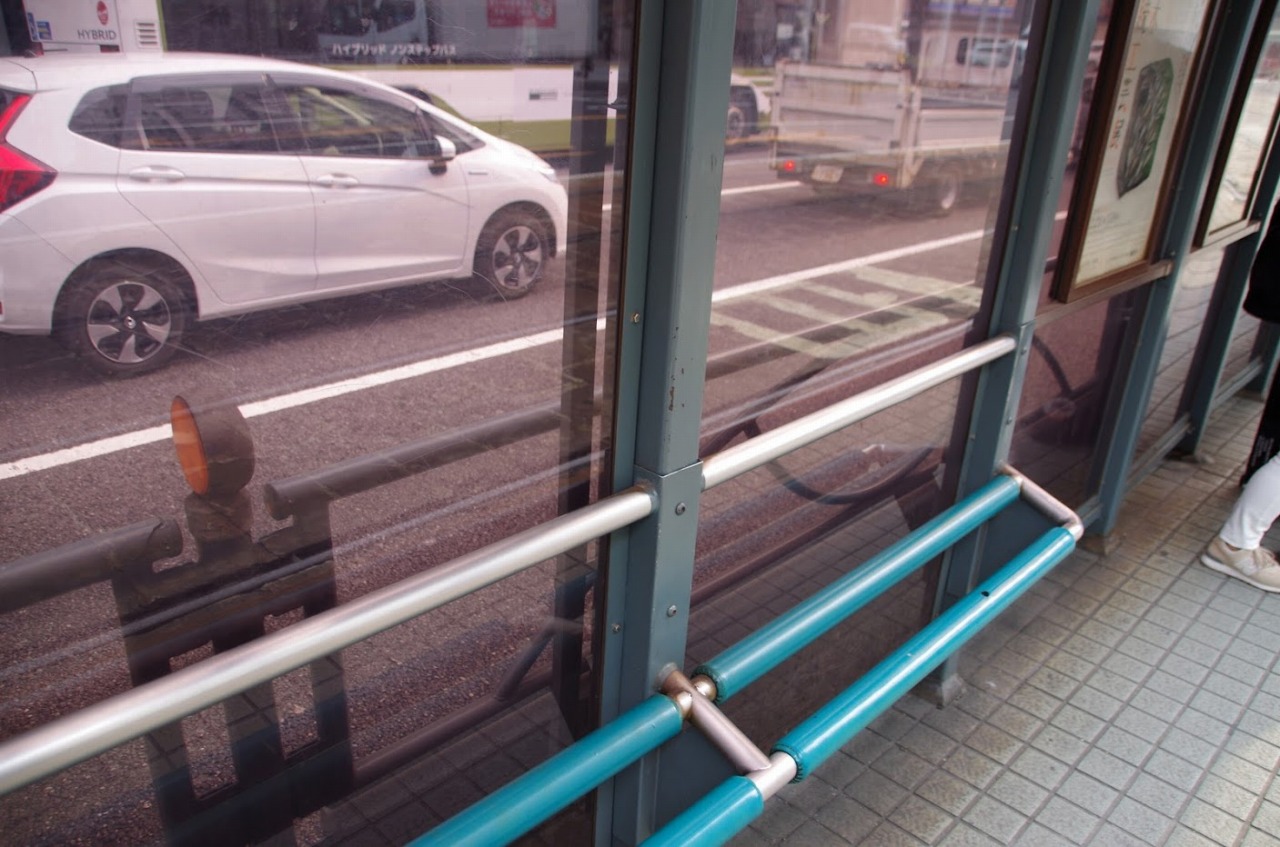 みなもが腰掛けていた路電のベンチ。