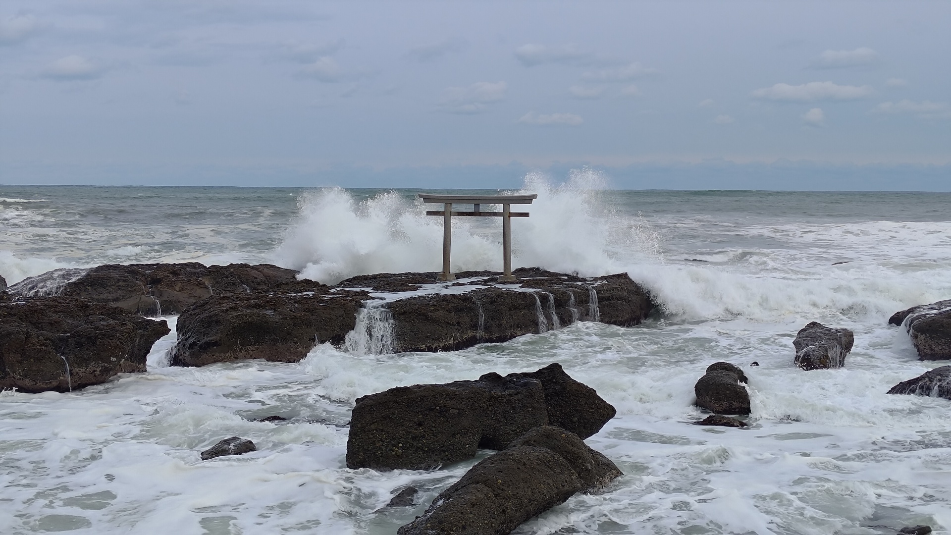 今日は結構海が荒れてたので磯の鳥居も映えますね。