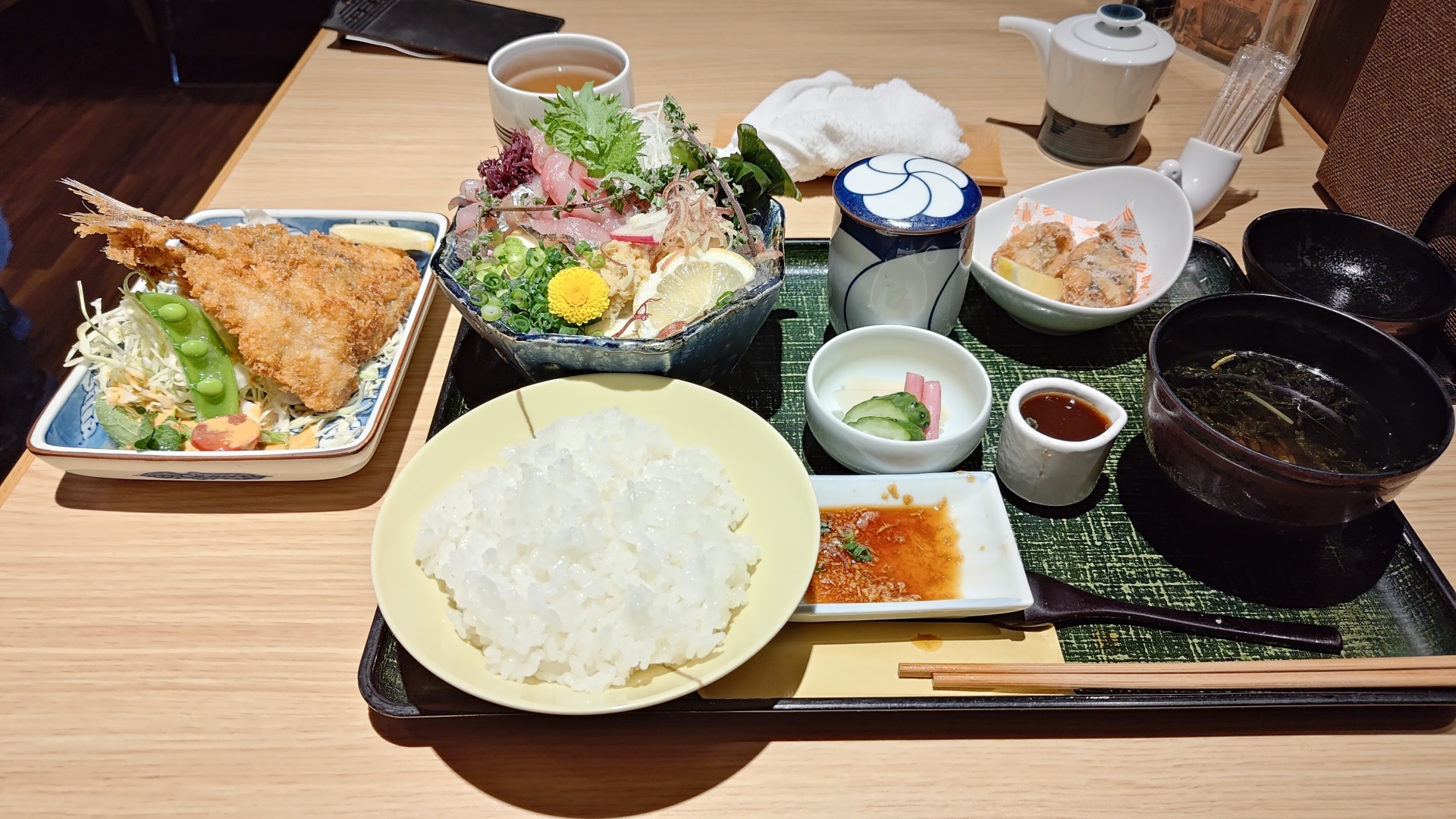 いわし定食を頼みましたが、いわしの刺身が今まで食べた中で一番美味しかったです。